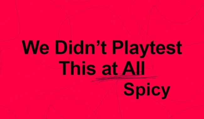 ZoomDetails We Didn’t Playtest This at All – SpicyPartyBy Buró7 de February de 2022¡More about We Didn’t Playtest This at All – Spicy!